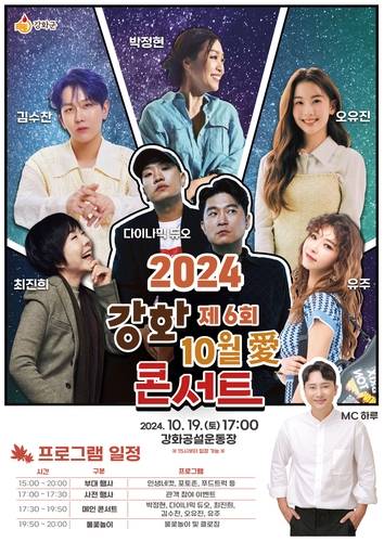 강화군은 오는 19일(토) 오후 5시 강화공설운동장특설무대에서 '2024년 제6회 강화 10월애(愛) 콘서트'를 개최한다.