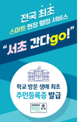 '서초 간다go!'는 생애 최초로 주민등록증을 발급받는 고등학교 2∼3학년 학생을 대상으로, 희망하는 학교에 담당자가 직접 방문해 발급 신청을 처리해 주는 서비스다. 이를 통해 학생들은 학업 중에 동주민센터를 방문하는 번거로움 없이 자신의 첫 주민등록증을 신청할 수 있다.