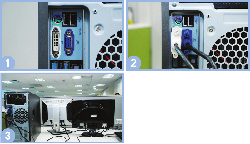 ❷ 컴퓨터 전원을 끈 상태에서 본체에 모니터 케이블을 연결한다.