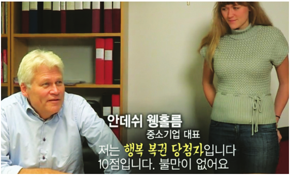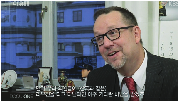 길거리에서 만난 거의 모든 시민들은 “정치인을 신뢰한다”고 말하고, 스웨덴의 중소기업인은 막중한 세금에도 불구하고 “나는 행복복권에 당첨됐다”며, “스웨덴은 정말 기업하기 좋은 나라”라고 자신있게 말한다. 노인행복지수 세계 3위, 살기 좋은 나라 세계 5위, 행복 지수 세계 8위, 청렴도 세계 4위 나라 국민들의 ‘분에 겨워 넘치는’ 인터뷰를 대한민국에서 보고 있노라면 절로 기분이 싱숭생숭해진다.