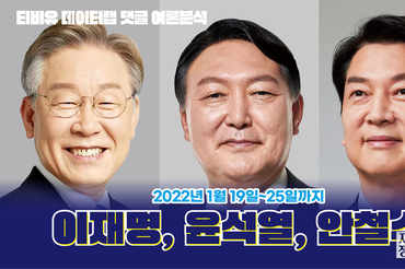 티비유 데이터랩에서 살펴본 댓글 여론 -이재명 윤석열 안철수 대선후보 3인