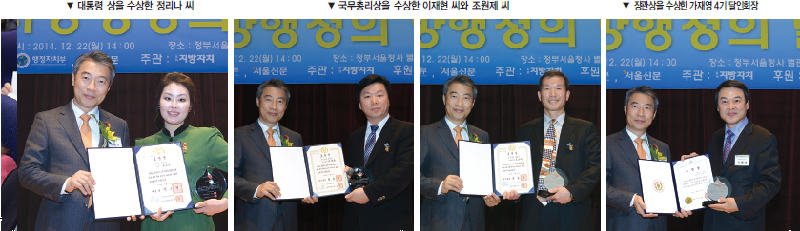 본지가 주관하고 행정자치부와 〈서울신문〉이 공동주최하는 제4회 지방행정의 달인 시상식이 지난해 12월 22일 정부서울청사 별관 2층 대강당에서 진행됐다. 이날 사회는 본지 이영애 편집인이 직접 진행해 그동안의 여러 시상식과는 차별화되게 성황리에 마쳤다.