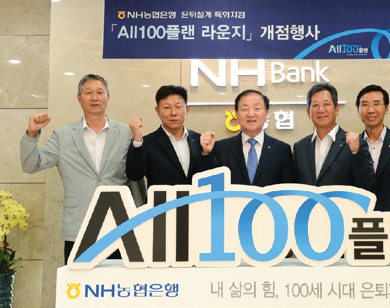 김주하 NH농협은행장은 7월 15일 서울 중구 통일로 본점 영업부에서 은퇴설계 마케팅 강화를 위해 전국 101개소에 특화지점인 ‘ALL100플랜 라운지’ 개점식을 가졌다.