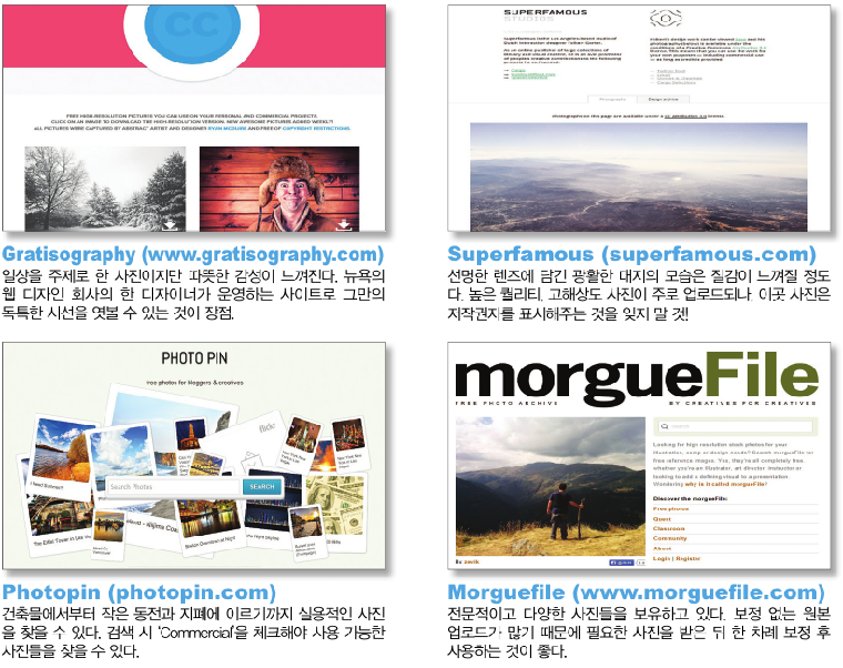 10마디 문장보다 1장의 사진이 더 강렬할 때가 있다. PPT를 작성할 때 내용을 보다 효과적으로 전달하기 위해 필요한 사진을 찾을 때가 많지만 해상도와 저작권 문제로 사용할 수 있는 이미지 찾기가 하늘의 별따기만큼 어려운 것이 현실이다. 이런 어려움을 해결해줄, 국내외를 망라한 고해상도 무료 이미지사이트 10곳을 소개하고자 한다.