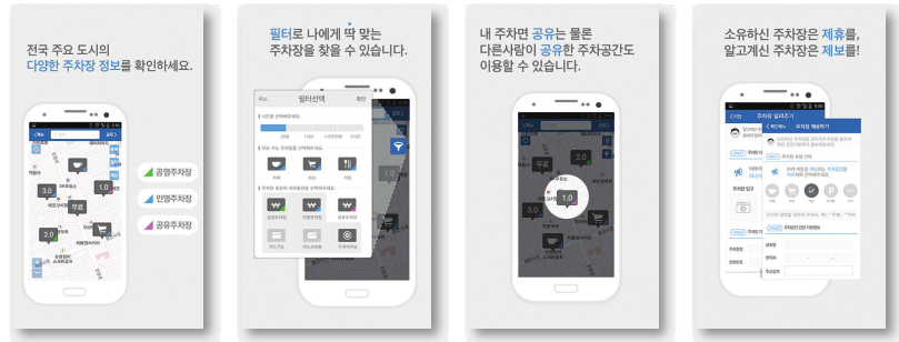 주차장을 찾아다니다 약속시간에 늦어본 경험이 있다면, 무턱대고 찾아간 주차장이 이용요금이 너무 비싸 눈물을 머금고 주차해본 경험이 있다면, 또 내가 지금 사용하지 않는 주차장을 다른 사람과 함께 공유하고 싶다면 ‘모두의 주차장’을 다운로드해 사용해보자.