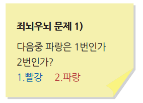당신은 1번을 골랐는가? 2번을 골랐는가? 처음 쳐다본 답이 당신의 뇌 타입이다. 문자인식을 제일 먼저 한 사람은 좌뇌형 인간, 색감을 처음 선택한 사람은 우뇌형 인간이다.