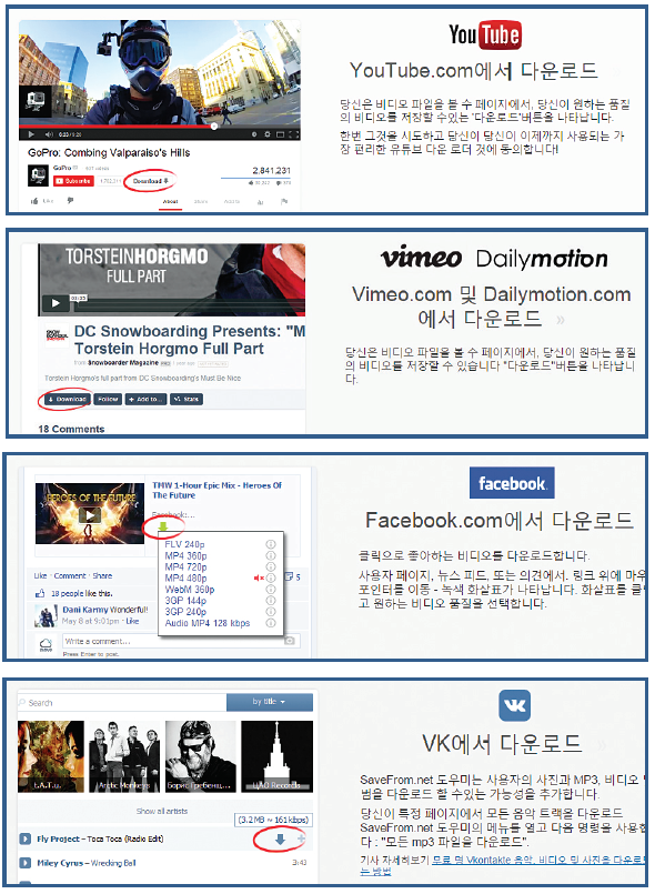 ‘savefrom.net’에서 동영상을 다운받으려면 사이트에 접속해 해당영상 URL을 복사해 붙여 넣은 후 저화질부터 고화질의 영상을 취사 선택해 다운로드하면 된다. ‘savefrom.net’은 유튜브 외에 페이스북, 비메오, VK.COM 등 다양한 영상사이트를 지원한다.