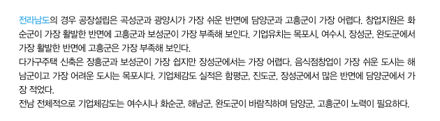 그러나 지방정부, 특히 기초자치단체의 기업체감도를 위한 지원이나 규제의 정도는 다른 조건들과 결합됐을때 시너지효과를 나타낼 수 있고, 도시의 이미지제고와 도시홍보의 효과를 가져온다는 측면에서 그 의미를 찾을 수 있다. 다른 조건이 유사하다면 광역자치단체 내의 기초자치단체의 지원이나 규제는 기업입지의 최종결정에 분명히 영향을 준다. 그러므로 광역자치단체 간의 기초자치단체들 간의 기업체감도에 대한 비교는 의미를 가진다고 할 수 있다.