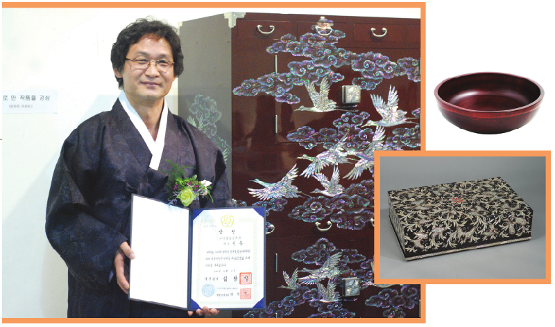 “나전칠기는 세균에 저항하는 항균력, 심지어 항암효과도 있고, 건조할 때는 습기를 뱉고, 습하면 발산하는 습윤효과, 공기정화 효과까지 뛰어납니다.”