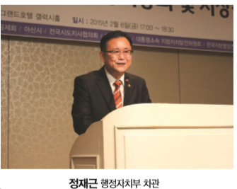 한국지방자치학회 2015년 정기총회 현장에는 우리나라의 지방자치를 이끌어가는 이들이 한자리에 모였다. 특히 정재근 행정자치부 차관이 새롭게 구성된 19대 지방자치학회 운영부회장을 맡았는데, 정 차관은 “지방자치 20주년을 계기로 삼아 행정자치부는 지방자치가 개선과 발전의 대상은 될지언정, 결코 후퇴하거나 물러서서는 안 되는 국가운영의 가장 중요한 제도, 시스템이라는 것을 국민, 언론, 중앙부처에 알리는 일에 많은 힘을 기울이겠다”며, “할 수 있는 한 많은 지원을 아끼지 않겠다”고 응원의 말을 전했다.