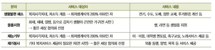 정부·지자체의 사회안전망 강화에도 복지사각지대, 장애인, 노인, 결손가정 등 복지수요는 빠르게 증가하 고 있다. 이를 해결하기 위해 시민의 자발적 참여를 통한 ‘비예산 복지정책’의 필요성이 대두됐다.