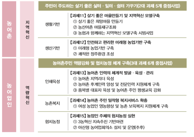 • 역량강화분과: 농업경영인회, 여성농업인회, 4-H회, 생활개선회