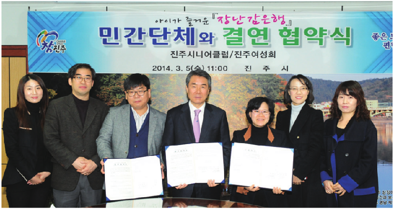 2014년 1월 진주시내 4개 대학과 MOU의 체결을 시작으로 보육관련 7개 기관단체와 장난감은행의 발전을 위한 협약을 체결했다. 경상대를 비롯한 4개 대학은 육아 보육 정보교류와 정책제안, 프로그램 운영에 따른 대학생 자원봉사자를 제공하기로 하고, 진주여성회 등 보육관련 3개 단체는 각종 재능기부와 시간제보 육실 보육지원, 공동 나눔 장터운영 등을 제공한다.
