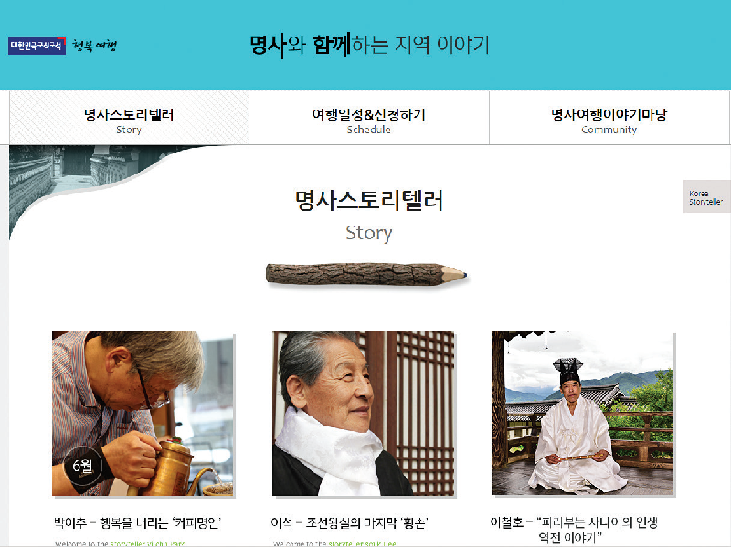 문화체육관광부는 지역의 역사와 생생한 삶을 함께한 지역 명사의 이야기를 테마로 하는 스토리 관광상품을 개발하고 지원할 것이다. 이를 위해 5억원의 예산을 새롭게 편성했다. 어르신들의 재미있고, 현장감 있는 삶의 이야기와 지역의 관광명소가 접목된 특별한 체험관광코스를 개발하는 것이다. 실례로 한국의 1세대 바리스타 박이추와 조선 마지막 황손 이석 등이 있다.
