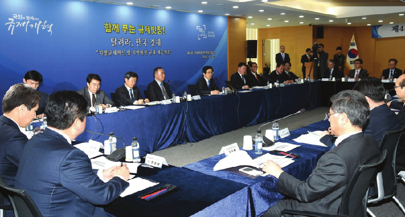 국무조정실은 2월 23일 대전 무역회관에서 제4차 규제개혁 현장점검회의를 개최해 불합리한 지방규제 개선을 3월 말까지 끝내고, 지방규제지도를 대폭 보강해 지자체간 경쟁을 촉진하며 지역경제 활성화를 저해 하는 중앙정부 규제도 손보기로 했다.