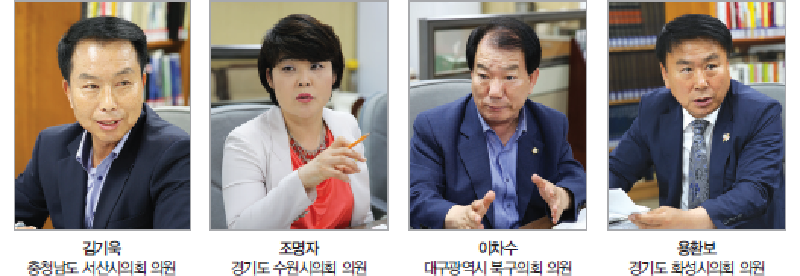 김기욱(서산시의회 의원, 군지련 회장)_ 네, 그런 편입니다. 먼저 이런 자리를 마련해주셔서 진심으로 감사드립니다. 제가 2대 회장이 되면서부터 함께 활동하고 계시는 세 분 의원님들은 이 분야의 달인들이십니다. 저하고 4~5년째 같이 일하고 있는데, 저희 연합회 분위기가 참 좋습니다. 하나의 같은 목적을 가지고 있기 때문인 것 같습니다.