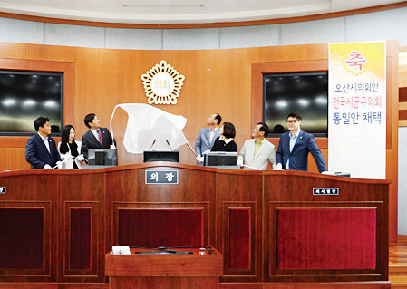 오산시의회 시군의회 최초 한글 휘장 제막