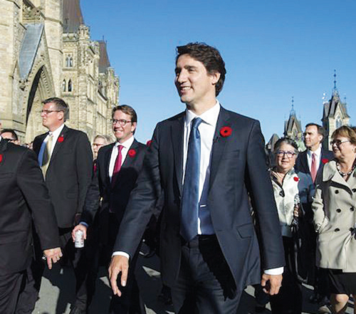 쥐스탱 피에르 제임스 트뤼도 총리는 캐나다 자유당 대표로 2015년 10월 19일 총선에서 승리해 11월 4일 캐나다 총리로 취임했다. 트뤼도 총리의 아버지는 ‘캐나다의 아버지’라 불리는 피에르 트뤼도 전 총리이다. 아들 트뤼도 총리는 맥길 대학교와 브리티시컬럼비아 대학교를 졸업해 라디오 진행자와 번지점프 강사, 바텐더등의 직업을 전전하다 한동안 고등학교 연극교사로 일했다. 정치에 관심이 없었던 트뤼도 총리는 아버지의 정치후계자로 지목됐던 막내 동생이 1998년 눈사태로 숨진 뒤 눈사태 안전 홍보대변인으로 활동하면서부터 정치에 뜻을 두기 시작했다. 아버지의 대를 이어 자유당에 입당해 2008년 퀘벡 주 몬트리올의 파피노 지역구에서 하원의원으로 당선되었고 2011년 재선됐다.