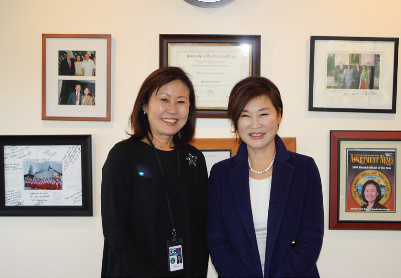 Michelle Steel_ 그 당시에 미국 전역에서 정치인으로 선출된 사람들이 모두 모여서 서명을 했어요. 왜냐하면 한국과 미국과의 무역에서 얻을 수 있는 이익이라든지, 직업을 창출하는 것뿐 아니라 캘리포니아주만해도 한국인들이 많이 살거든요. 결국은 이 지역의 한국인들에게도 이익이 돌아오게 되는 거죠. 지금은 무역이 활발하게 이뤄지고 있다고 하는데 가끔 문제가 생기면 제가 가서 그것들 해결하는 역할도 해요. 그런 것이 잘 해결되면 앞으로 더 활성화 되지 않을까 생각합니다.