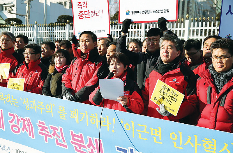 한편 공노총은 작년 12월 17일부터 공직사회 성과연봉제 도입 저지를 위한 1인 시위를 이어오고 있다.