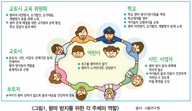 보호자, 시민, 사업자, 관계기관 등과 연계하여 왕따 방지 등의 예산 마련과 같은 관련 업무 역할을 총체적으로 수행해야 한다.