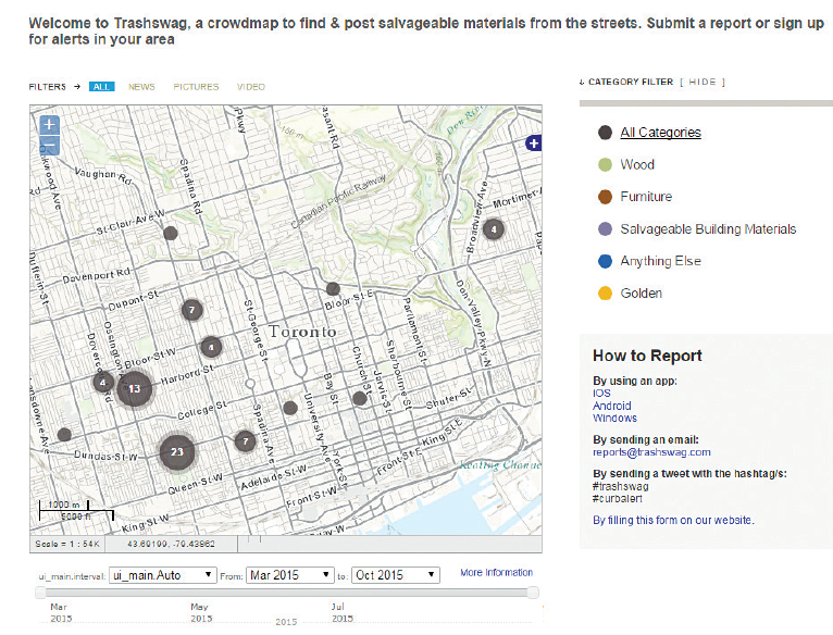Trash swag는 가구를 버리려는 사람과 가구가 필요한 사람을 연결시켜주는 사이트다. 이 사이트에 가면 사용자들이 공유한 가구와 불필요한 물건이 있는 지역을 볼 수 있다. 많은 돈을 주고 사기 부담되는 가구를 버릴 사람에게 받는 것이다 보니 서로에게 윈윈이 된다.