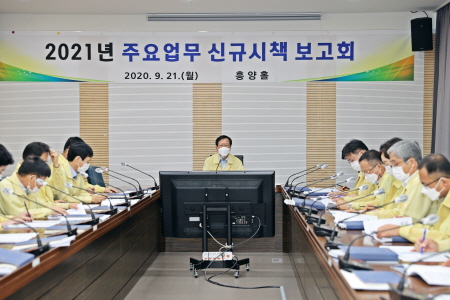 엄선된 21대 시책은 3회에 걸쳐 송군수 주재로 주요업무 보고 토론과 부군수 주관으로 군정조정위원회를 통해 고심 끝에 확정됐다.