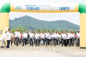 구미시는 지난 14일 낙동강 체육공원 일원에서 시민 1,000여 명이 참여한 가운데 ‘제16회 구미시민 녹색 자전거 대행진’을 성황리에 개최했다. 환경의 날을 기념한 이번 행사는 ‘플라스틱 오염 종식’을 주제로 열렸으며, 탄소중립 실천의 의미를 시민들과 함께 되새기는 자리로 마련됐다. 행사에는 읍면동 그린바이크, 사이클연맹, 구미자전거사랑(구·자·사), 두바퀴점검단, 자전거교실 수료생, 환경단체, 시민 등 다양한 계층이 함께했다. 이날 행사에서는 내년부터 도입될 구미시 공영자전거의 공식 명칭이 최초 공개되어 눈길을 끌었다. 선정된 이름은 ‘바이구미’로, ‘바이크(Bike)’와 ‘구미(Gumi)’의 합성어다. ‘구미와 함께 달린다, 자전거를 타고 구미를 누빈다’는 의미를 담아 시민 공모를 통해 선정됐다. 녹색생활 실천을 주제로 한 다양한 부스 프로그램도 큰 호응을 얻었다. △커피박을 활용한 키링과 부채 만들기(탄소제로교육관) △천연모기퇴치제 만들기(자연보호구미시협의회) △폐플라스틱 테라리움 만들기(경북자연사랑연합) 등 체험형 부스가 마련됐다. 이외에도 △삼성전자의 ESG활동 전시 △탄소중립 퀴즈와 사행시 짓기(탄소중립지원센터) △폐건전지 교환 △교통안전 홍보