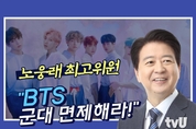 노웅래 더불어민주당 최고위원이 BTS 에 대해 병역 특례 혜택을 부여해야 한다고 주장했다. 10월 6일 <김종배의 시선집중>에 출연한 노웅래 최고위원은 "대체 복무제도 즉 병역 특례 제도는 오래전부터 시행해왔고 특히 산업기술 인력이나 전문연구 인력, 예술인 및 체육인을 대상으로 적용 중인데, 왜 유독 대중문화계에 대해서만 적용이 안 되냐"라며 "이번 기회에 대중문화계 종사자에 대해서도 병역 특례 제도를 적용할 수 있게 하자"고 거듭 강조했다. 한편에선 BTS에 병역 특례 제도 대신 입영을 연기할 수 있게 하자는 주장도 있다. 이에 대해 노 최고위원은 "병역 문제는 젊은이들과 부모님들에게 대단히 민감한 문제이자 공정과 정의의 근본 문제이다. 병역 특례 제도가 군에 안 가는 게 아니냐, 입영을 봐주는 게 아니냐 등의 오해가 있다"고 말했다. BTS가 국위 선양을 했다, 아니다의 기준이 논란이 되지 않냐는 물음에 대해 노웅래 최고위원은 "공적심사위원회 같은 걸 둬서 특례 부여 여부를 가리면 된다"고 말했다. 이어 노 최고위원은 "6조 원 가량의 경제적 파급 효과 등 부가가치를 내는 데도 융복합 시대에 대중문화를 한다는 이유로 평가가 어렵다는 식의 논리라