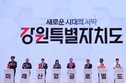 특별자치도 출범을 이틀 앞둔 강원도가 9일 강원대 백령아트홀에서 기념식을 열고 출범을 축하했다. 특별자치도의 주인공인 강원도민을 비롯해 윤석열 대통령, 한창섭 행정안전부 장관 직무대행과 우동기 국가균형발전위원장, 남형기 국무조정실 국정운영실장, 전국 17개 광역 지자체장과 강원지역 국회의원 및 지자체장, 도의원과 강원특별자치도 범국민추진협의회, 시군 번영회 등 2,000여 명이 자리했다. 특별히 이날은 전 마라토너 황영조, 221시간의 기적 박정하 광부, 제2연평해전 당시 전우를 구하려다 작고한 박동혁 병장의 부모님, 2019년 강릉 시내에서 흉기 난동범을 맨손으로 제압한 전중현, 변정우 씨, 춘천 공지천에 빠진 시민을 구조한 송우근 소방교, 700회 헌혈 기록을 세운 헌혈왕 이순만 씨, 봅슬레이 국가대표팀 막내 소재환 선수 등 강원도민이 기억해야 하는 영웅과 의인들, 미래인재들을 초청해 역사적 순간을 함께했다. 특별자치도의 출범을 축하하기 위해 참석한 윤석열 대통령은 "강원특별자치도특별법 제정 1년 만에 산림, 환경, 농업, 군사 분야의 규제를 대폭 완화하는 내용의 특별법 개정 성과를 여러분과 함께 이루어냈다"라며 특별자치도 출범을 축하했다. 이어 윤석열