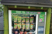 경상북도 청송군(군수 한동수)이 설치한 청송사과자판기가 일 평균 7만원, 최대 30만원의 매출을 올리며 대박을내고 있다. 청송군은 지역 농산물 브랜드를 높일 수 있는 좋은 계기라 판단하고 확대 설치를 추진하고 있다. 경상북도 청송군이 ‘청송사과’ 브랜드를 홍보하고 판매를 증진시키기 위해 청송사과유통공사와 함께 설치한국내 최초의 생과일 자판기인 ‘청송사과자판기’가 대박 행진을 일으키고 있어 화제다. 지역 농산물 판매 방식전환의 좋은 선례가 될 것으로 보인다. 2015년 7월 청송군의 대표 관광지인 주왕산국립공원에 최초로 설치된청송사과자판기는 서울 서초구청 및 동대문구청, 용산 전쟁기념관, 경상북도청 등 전국 9곳에 설치돼 하루 평균 7만원의 매출을 올리고 있다. 이는통상적인 음료자판기의 하루 평균 매출인 5만원에 견주어볼 때 상당한 수준으로, 특히 주왕산 입구와 경상북도청에 위치한 자판기는 주말이면 일 최대 30만원 까지 매출이 치솟는 것으로 나타났다. 청송사과자판기는 사과 생과를 1과씩 개별포장해 1500원에, 사과를 착즙한 원액을 1000원에 판매하고 있다. 이를 고려하면 하루 200~300명 정도 꾸준히 자판기를 이용하고 있는 셈이다. 특히