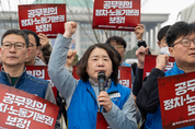 대한민국공무원노동조합총연맹(위원장 석현정, 이하 공노총)은 3월 12일 서울 여의도 국회 정문 일대에서 전국공무원노동조합(위원장 이해준)과 공동으로 양대 노조 조합원 30여 명이 참석한 가운데 '제22대 총선 공무원노동조합 공동 정책 제안 발표 기자회견'을 진행했다. 이날 기자회견은 석현정 위원장의 대표자 발언과 이철수 국가공무원노동조합(이하 국공노) 위원장의 현장 발언, 이창석 소방공무원노동조합(이하 소방노조) 사무총장이 양대 노조 공동 기자회견문을 낭독했고, 기자회견 말미에는 '공무원도 하트 누르고 싶다!', '공무원도 좋아요 누르고 싶다!'가 적힌 스티커를 안내판에 붙이는 퍼포먼스를 진행했다. 기자회견이 진행되는 동안 양대 노조 참석자들은 '공무원 정치·노동기본권 보장!', '노후 소득공백 해소! 보수위원회 위상 강화!' 등의 문구가 적힌 손팻말과 구호를 외치며 앞으로 구성하는 제22대 국회에 이번 요구사항을 수용할 것을 촉구했다. 석현정 위원장은 "오늘 우리는 각 당에 공무원 노동자의 처우개선을 담은 내용의 정책을 제안한다"면서 "30만 양대 노조 조합원과 120만 공무원 노동자가 이를 보고 있다. 지난 21대 국회와 마찬가지로 이번에도 공무원 노동자
