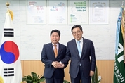 한국농수산식품유통공사 김춘진 사장은 4월 4일 나주 본사에서 김창규 제천시장을 만나 지역 농특산물 수출 확대를 위한 다양한 수출지원사업에 대해 논의하고 농특산물의 고부가가치 창출을 통한 먹거리 산업 발전 방안을 모색했다. 또한, 김치의 종주국은 한국임을 알리는 글로벌 ‘김치의 날’ 제정 확산에 동참해 줄 것을 요청했으며, 중앙아시아 키르키스스탄과 아제르바이잔 대사를 역임한 김창규 제천시장은 중앙아시아 지역의 ‘김치의 날’ 제정 확대를 위해 함께 힘쓰겠다고 화답했다. 그리고 먹거리 분야 탄소배출 감축을 위한 저탄소 식생활 ‘그린푸드 데이’ 캠페인 확산 등 건강한 지구를 만드는 ESG실천에도 함께 뜻을 모으기로 했다. 이 자리에서 김 사장은 “제천은 준고랭지 청정지역으로, 일교차가 커 당도 높은 프리미엄 사과, 복숭아 등이 유명하며, 약초의 본향으로 황귀와 당귀 등 약초산업이 발달된 곳”이라고 말했다. “앞으로도 다양한 수출지원 사업으로 지역 농특산물을 고부가가치 먹거리 산업으로 육성해 수출 확대에 힘쓸 것”이라고 밝혔다.