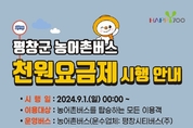 평창군이 9월 1일부터 농어촌버스 운임료를 1,000원 단일요금제로 운영한다. 군은 농어촌버스 운송 사업자인 (주)평창시티버스와 농어촌버스 운임에 대한 단일요금제 협의를 완료하였으며, 주민들은 9월부터 평창군 관내를 운행하는 농어촌버스를 1,000원에 이용할 수 있게 된다고 밝혔다. 농어촌버스 운임 1,000원 단일요금은 정선군, 인제군에 이어 강원도에서는 3번째로 시행하는 것으로 성인 기준 1,000원, 학생은 500원으로 농어촌버스를 이용할 수 있게 요금제를 개편한다. 1,000원 버스는 군민과 관광객의 교통비 부담을 완화하고 부족한 교통인프라에 대한 교통복지 제공하며 대중교통 이용 활성화에 이바지할 것으로 기대된다. 심재국 평창군수는 “단일요금 시행으로 군민의 교통비 절감 효과는 1년간 약 3억 원 정도로 예상된다.”라며, “군은 앞으로도 천원 버스 정책 외에도 농어촌버스 노선을 개편하고 수요응답형 교통수단(DRT)을 도입해 군민의 교통복지 증진을 위해 노력하겠다.”라고 말했다. [지방정부티비유=티비유 기자]