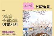 수원시(시장 이재준)가 문화체육관광부·한국관광공사와 함께 '3월 수원행 여행가는 달' 캠페인을 펼친다. 문화체육관광부가 주최하고 한국관광공사가 주관하는 '2024 한국관광의 별'에서 올해의 관광지로 선정된 '수원화성&행궁동' 인근 관광지를 관광객에게 추천하고, 다양한 할인 혜택도 제공한다. 3월 한 달간 화성행궁 유료 입장객은 입장료를 20% 할인해 주고, 행궁동에 있는 화홍·행궁사랑채(여행자라운지) 방문 후 '요새화성 요즘행궁' 인스타그램 계정을 팔로우하면 기념품을 10% 할인해 준다. SNS에 화홍·행궁사랑채 방문 인증을 하면 추첨을 거쳐 상품을 증정한다. 행궁동에서 소비한 영수증을 인증하면 수원FC, kt위즈 경기 관람료를 2000원 할인받을 수 있다(홈 경기 특정 구역). 수원시를 카카오톡 친구로 추가하면 수원박물관 무료입장, 플라잉 수원, 아쿠아플라넷 광교 할인 쿠폰을 받을 수 있다. 3월에 가볼 만한 여행지, 추천 여행 코스는 수원시 공식 유튜브 채널에서 찾을 수 있다. '2024년 수원여행 영상 공모전-숏폼(짧은 영상) 콘테스트' 수상작과 국외 인플루언서의 수원 여행 후기 영상을 유튜브 채널에서 볼 수 있다. 수원화성, 수원수목원, 월화원, 스타