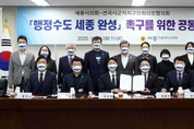 전국시군자치구의회의장협의회와 세종특별자치시의회가 11월 10일 의회 청사 의정실에서 ‘행정수도 세종 완성 촉구를 위한 공동선언문’을 채택했다. 이날 공동선언문 채택에는 충북 시군의회의장협의회장을 맡고 있는 청주시의회 최충진 의장, 대전 자치구의회의장협의회의 김태성 대덕구의회 의장, 충남 시군 의회의장협의회를 맡고 있는 천안시의회 황천순 의장, 전북 시군의장협의회의 강동화 전주시의장이 참석했다. 세종특별자치시의회는 지난 9월 12일 전국시도의회의장협의회와 행정수도 세종 완성을 위한 공동선언문을 채택한 데 이어 전국 기초의회의장협의회와도 공동 선언문을 채택함으로써 전국 모든 지방의회가 행정수도 세종 완성을 염원했다는 데 의미가 있다고 밝혔다. 특히 이번 공동선언문 채택으로 행정수도 완성을 향한 광역·기초를 아우르는 국민적 공감대가 형성됨으로써 행정수도와 관련된 국정 현안 해결의 전환점이 마련될 것으로 기대를 모으고 있다. 이태환 세종시의장은 “정부와 국회가 국민적 기대와 바람에 부응해 공동선언문에서 요구하는 행정수도 완성 추진, 국회 개헌 특위 구성, 여야와 정부, 지방 정부가 참여하는 국회 행정수도완성특별위원회 구성 등 후속 조치를 마련하는 데 적극적으로 힘