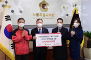 김인호 의장 “서울특별시의회는 취약계층이 사각지대로 내몰리지 않도록 보살피고, 민생이 최대한 빨리 안정과 활기를 되찾도록 적극적인 정책 노력을 펼치겠다” 서울특별시의회(의장 김인호)가 ㈜보람씨앤에치 및 ㈜유테크와 함께 주변 어려운 이웃의 생활방역과 안전을 위해 물티슈, 일회용 청소용품, 휴대용 손소독제 등 생활방역용품을 지원한다. 서울시의회는 취약계층을 위한 생활방역용품 기부전달식을 ㈜보람씨앤에치, ㈜유테크, 서울사회복지공동모금회와 함께 서울특별시의회 의장실에서 개최했다. 18일에 열린 이날 행사에는 김인호 서울시의회 의장, 오병주 ㈜보람씨앤에치 부사장, 김용희 서울사회복지공동모금회 사무처장이 참석했다. 이번 행사는 ㈜보람씨앤에치와 ㈜유테크가 코로나로 인해 어려워진 주변 이웃들에게 물티슈, 일회용 청소용품, 휴대용 손소독제 등 생활방역용품 기부 의사를 서울시의회 측에 밝힘으로써 추진됐다. 기부된 생활방역용품은 서울사회복지공동모금회를 통해 서울시 관내 저소득층 등 코로나로 인해 어려웃 이웃들에게 전달될 예정이다. 행사에 참석한 오병주 ㈜보람씨앤에치 부사장은 “코로나 재확산으로 인해 주변 이웃들이 많은 어려움을 격고 있는데, 오늘 기부한 생활방역용품이 조금이라도
