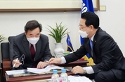 김영록 전남도지사가 2014~2017년 제37대 전라남도지사를 역임했던 이낙연 더불어민주당 대표와 면담을 갖고 지역 현안 해결을 위한 지원을 건의했다. 19일 전라남도에 따르면 김영록 전남지사는 이낙연 대표에게 ▲그린뉴딜 전남형 상생일자리(해상풍력 발전단지) 추진 ▲전남 국립의과대학 설립 ▲‘한국에너지공과대학교법’ 제정 ▲‘지방소멸위기지역 지원 특별법’ 제정 ▲‘여수·순천 10·19사건 특별법’ 제정 등 5건의 중점 현안을 설명하고 협조와 지원을 요청했다. 김영록 전남도지사는 “전남의 오랜 꿈인 대규모 해상풍력발전단지는 정부 그린뉴딜의 대표사업이자 해상풍력 단일단지로는 최대 규모로, 총 48조 원을 투입해 450개 기업을 육성하고 상생형 일자리 12만 개를 창출한다”며 “단지 조성을 위해 송배전 공동접속설비에 대한 국가의 선제적인 투자, 지원부두와 배후단지의 조기구축과 예타면제, 여러 부처 인허가를 총괄 처리할 해상풍력개발지원본부 설립을 적극 지원해달라”고 요청했다. 김 지사는 이와 함께 이번 국회심의 과정에서 국비 반영이 필요한 ▲국립심뇌혈관센터 설치 ▲경전선 고속전철 건설 ▲2023순천만국제정원박람회 개최 지원 ▲무안국제공항 활주로 연장 ▲바이오헬스 융복