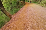 ‘맨발의 청춘’. 왕년에 많이 들어보던 말이다. 맨발로 황톳 길을 걸으며 건강을 챙겨 청춘으로 돌리려는 곳이 있다. 대전 대덕구에 있는 계족산 황톳길이다. 계족산은 해발 429m로 닭계(鷄), 발족(足) 닭발처럼 생겼다 해서 붙여진 이름이다. 황톳길로 유명한 계족산을 방문한 4월 16일, 산 입구에 도착한 시각이 오전 10시임에도 사람들로 북적였다. 차에서 내려 5분 정도 걸으니 계족산 입구 황톳길 등산로가 눈앞에 펼쳐졌다. 등산로 한쪽에 발바닥 모양의 계족산 황톳길 설명 안내판이 있다. 임도(林道) 한쪽에 넓이 1.5m, 총길이 14.5㎞로 조성된 계족산 황톳길은 에코 힐링 휴식 공간을 제공하고 있으며 연간 100만 명 넘게 찾는 곳으로, 해마다 ‘계족산 맨발 축제’도 열린다고 한다. 일행 5명 중 3명은 황톳길을 걷겠다고 신발과 양발을 가지런히 비닐봉지에 담아 등산 가방에 넣고, 나머지 2명은 등산화를 신고 걷기로 했다. 전날 비가 내려 등산하는 데 괜찮은 날씨였지만, 맨발로 황톳길을 걷기에는 약간 차가운 날씨였다. 맨발로 처음 황토를 밟는 순간 발바닥이 차갑게 느껴져 오싹하기까지 했다. 하지만 황토 특유의 부드러운 촉감이 발바닥을 행복하게 해주고 자동