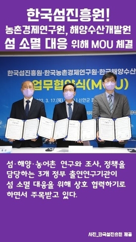 '섬 소멸 대응' 3개 정부 출연연구기관 ‘맞손’