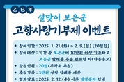 보은군은 설 명절을 맞아 고향을 사랑하는 마음을 전하고 기부문화를 활성화하고자 다음 달 9일까지 '보은군 고향사랑기부제 설맞이 이벤트'를 진행한다고 밝혔다. 이번 이벤트는 고향사랑기부제에 대한 관심도를 높이고 기부한 분들에 대해 감사를 표시함과 동시에 보은군과 기부자의 유대 강화를 위해 마련됐다. 2월 9일 안에 고향사랑e음 또는 전국 농협을 통해 보은군에 10만원 이상을 기부 후 답례품 신청을 완료하면 이벤트에 자동 응모되고 20명을 추첨해 3만원 상당 답례품을 추가 증정한다. 당첨자에게는 다음 달 12일 이후 개별 연락을 통해 당첨 사실을 알릴 예정이다. 허길영 군 행정운영과장은 "설 명절에 고향을 방문하는 가족과 친지들에게 보은군 고향사랑기부제를 널리 알릴 수 있는 계기가 됐으면 하는 마음으로 행사를 준비했다"며 "올해도 고향을 사랑하는 많은 분들의 관심과 참여로 고향사랑기부제가 활성화되길 기대한다"고 말했다. 올해부터 고향사랑기부제는 1인 최대 2,000만원까지 기부가 가능하며 세액공제 혜택과 기부액의 30%까지 지역특산품 등의 답례품 혜택을 받을 수 있고 기부 금액 10만 원까지는 전액 세액 공제되고 10만 원 초과분은 16.5% 공제된다.