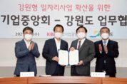 강원도는 코로나19 장기화로 인한 고용불안을 타개하기 위한 방안으로 정규직 일자리 창출에 특화된 ‘강원형 취직 사회책임제’를 추진하고 있다. 지방정부 주도로 청년 정규직 일자리를 확대하는 기업에 인건비와 융자를 지원한다. 강원형 취직 사회 책임제는 ‘취직 지원’과 ‘기업 성장 통한 고용유지’의 2단계로 진행된다. 1단계는 도내 기업에서 강원도민 정규직 1명을 고용하면 월 100만 원씩 1인당 인건비를 지원하는 ‘정규직 일자리 취직 지원’이 주축이다. 이와 함께, 1인당 최대 3,000만 원 융자를 제공하고 인센티브를 지원하는 ‘고용창출 유지 자금 지원 정책’도 진행하고 있다. 고용창출 유지자금 지원은 올해 정규직을 새로 채용하는 중소기업과 소상공인이 대상이다. 이와 관련해 강원도는 6월 현재 6,000여 개 기업에서 1만 7,000명 넘는 인원이 정규직 채용 지원을 신청했다고 밝혔다. 또한 강원도는 중소기업중앙회와 업무협약을 맺고 ‘강원형 일자리 정책’을 전국적으로 확대하기로 6월 9일 합의했다. 취직 사회책임제, 사회보험료 지원사업, 안심공제 사업이 포함됐다. 중소기업중앙회가 대표 사업으로 진행하는 ‘노란우산 공제사업’ 시행에도 협력하기로 했다. 여기에 지