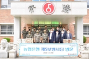 NH농협은행(은행장 손병환) 농업·공공금융부문 지준섭 부행장과 직원들은 7월 7일 경기도 연천에 위치한 육군 제5보병사단(열쇠부대)을 방문해 수박 500여 통과 컵라면 220박스를 전달했다. 이번 행사는 국토 방위에 힘쓰는 국군장병들에게 감사의 뜻을 전하기 위해 기획됐다. 지준섭 부행장은 “국토방위를 위해 헌신하는 국군장병들의 노고에 감사의 마음을 전하기 위해 위문품을 전달했다.” 며 "앞으로도 국군장병과 국민들에게 사랑받는 농협은행이 되도록 변함 없는 노력을 다하겠다.”고 말했다.