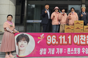 가수 이찬원 팬클럽 ‘경주찬또방’(방장 손정순)은 지난 10월 29일(화) 경주시청을 방문해 어려운 이웃을 위해 컵라면 84박스(2백만원 상당)를 기탁했다. ‘경주찬또방’은 이찬원의 생일인 11월 1일을 기념해 지역 내 어려운 이웃을 돕기 위한 기부 활동을 진행했으며, 이를 통해 지역사회에 대한 관심을 증진하고 나눔 문화를 확산하는 데 기여하고 있다. 또한, 이찬원의 선한 영향력도 함께 전파하고 있다. 이번 기부물품은 GS25 협업 상품으로, 경주찬또방과 GS25 함께 협업해 나눔실천에 더욱 의미를 더하고 있다. 손정순 방장은 “이찬원의 생일을 맞아 회원들과 함께 따뜻한 나눔에 참여할 수 있어 큰 의미가 있으며, 앞으로도 지역사회의 발전을 위해 나눔 실천에 더욱 힘쓰겠다”고 말했다. 김기호 시민복지국장은 “따뜻한 마음을 전해주신 경주찬또방 회원분들께 감사드리며, 이러한 정성이 지역사회에 잘 전달되어 이웃들에게 위로와 희망이 되기를 바란다”고 강조했다. [지방정부티비유=티비유 기자]