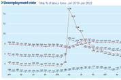 OECD(경제협력개발기구) 회원국들의 전체 평균 실업률이 8개월 연속 하락했다. 한국은 3.8%로 소폭 상승 OECD의 최근 발표에 따르면 2021년 11월 5.5%이던 실업률은 12월에 5.4%로 떨어져 코로나19가 세계적으로 확산하던 2020년 2월 이전 수준으로 0.1%포인트 차이로 거의 회복된 것으로 나타났다. OECD 실업률은 코로나19의 세계적 확산이 시작되면서 2020년 3월 5%대에서 4월 8.7%까지 치솟았었다. OECD 전체 실업률의 하락은 미국 등 선진국의 일시 해고자 재고용, 경제활동인구 증가 등의 영향으로 분석된다. 한국의 실업률은 3.1%에서 3.8%로 0.7%포인트 상승했다. 우리나라의 실업률은 2021년 8월 2.8%까지 내렸다가 9월 3.0%, 10월 3.2%, 11월 3.1%, 12월 3.8%로 상승세를 그렸다. 실업자 수는 9월 84만 9,000명, 10월 90만 명, 11월 89만 명, 12월 107만 9,000명이다. 우리나라의 청년 (15~24세) 실업률은 2021년 10월 8.1%, 11월 7.6%, 12 월 7.4%로 소폭 하락했다. OECD 지역 실업자 수는 3,610만 명으로 70만 명이 감소해 팬데믹 이전 실업
